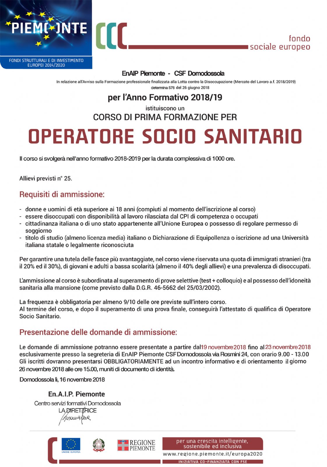 CORSO DI PRIMA FORMAZIONE PER OPERATORE SOCIO SANITARIO