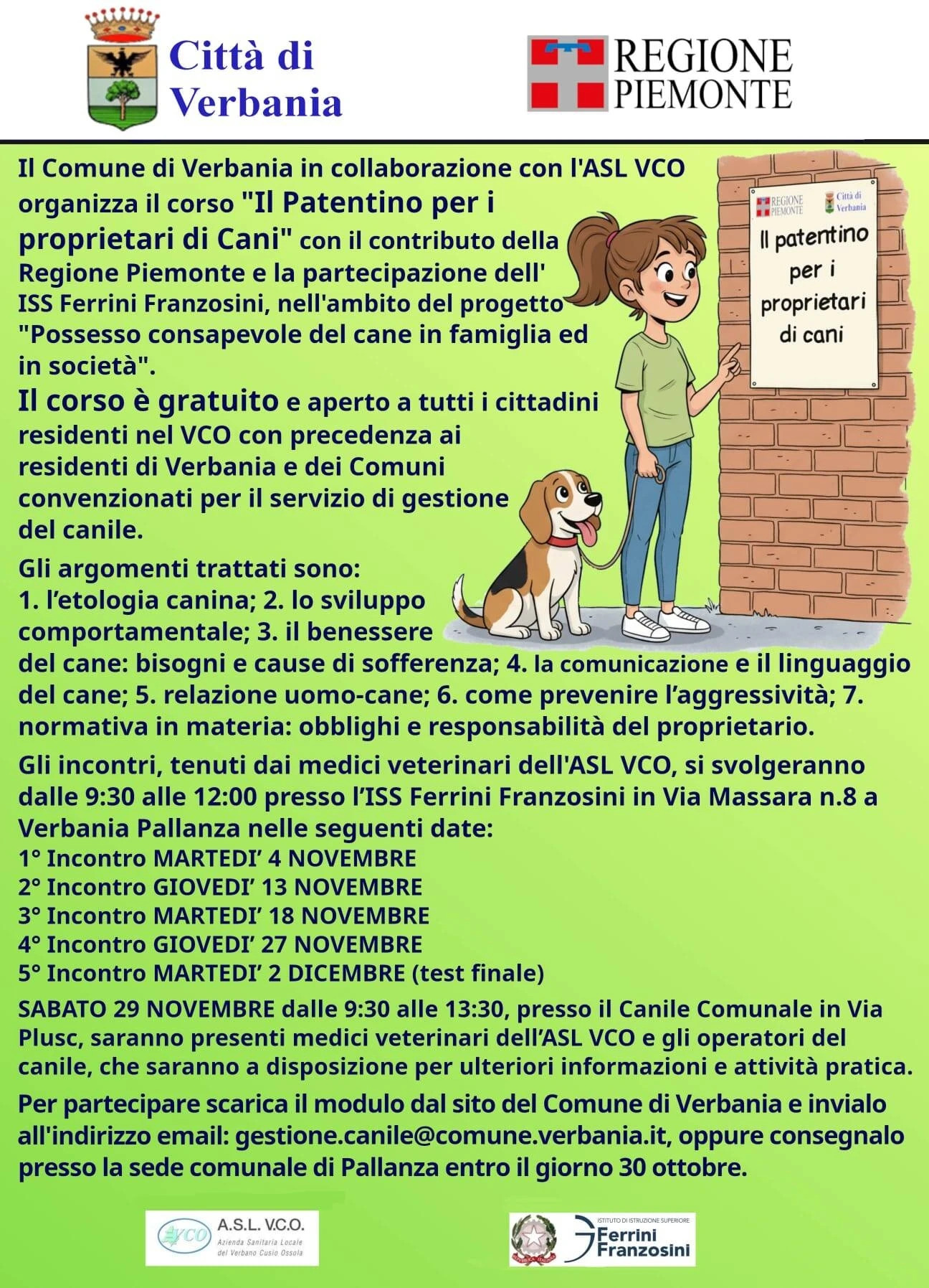 Il Comune di Verbania ed il Servizio Veterinario ASL VCO con il contributo della Regione Piemonte e la