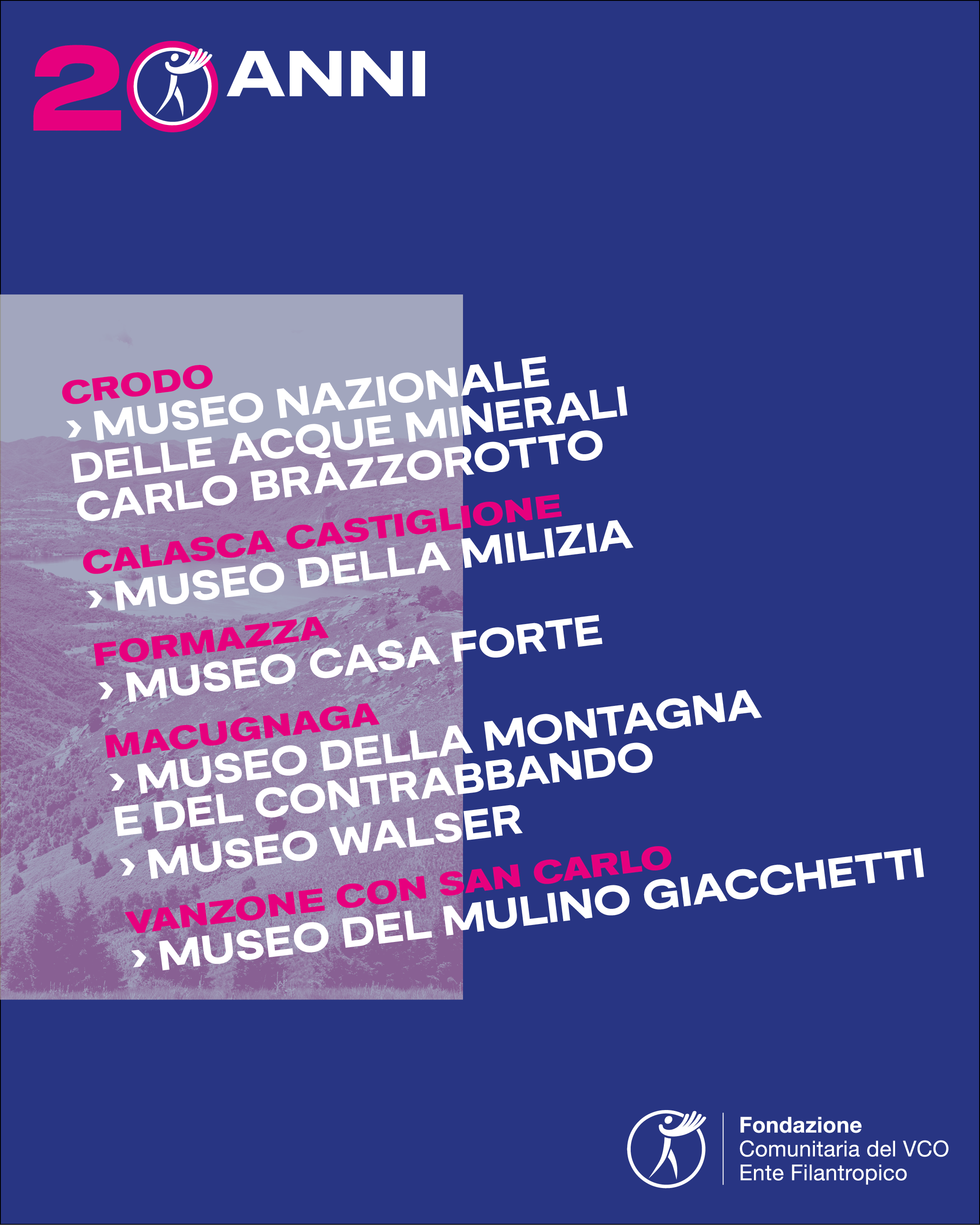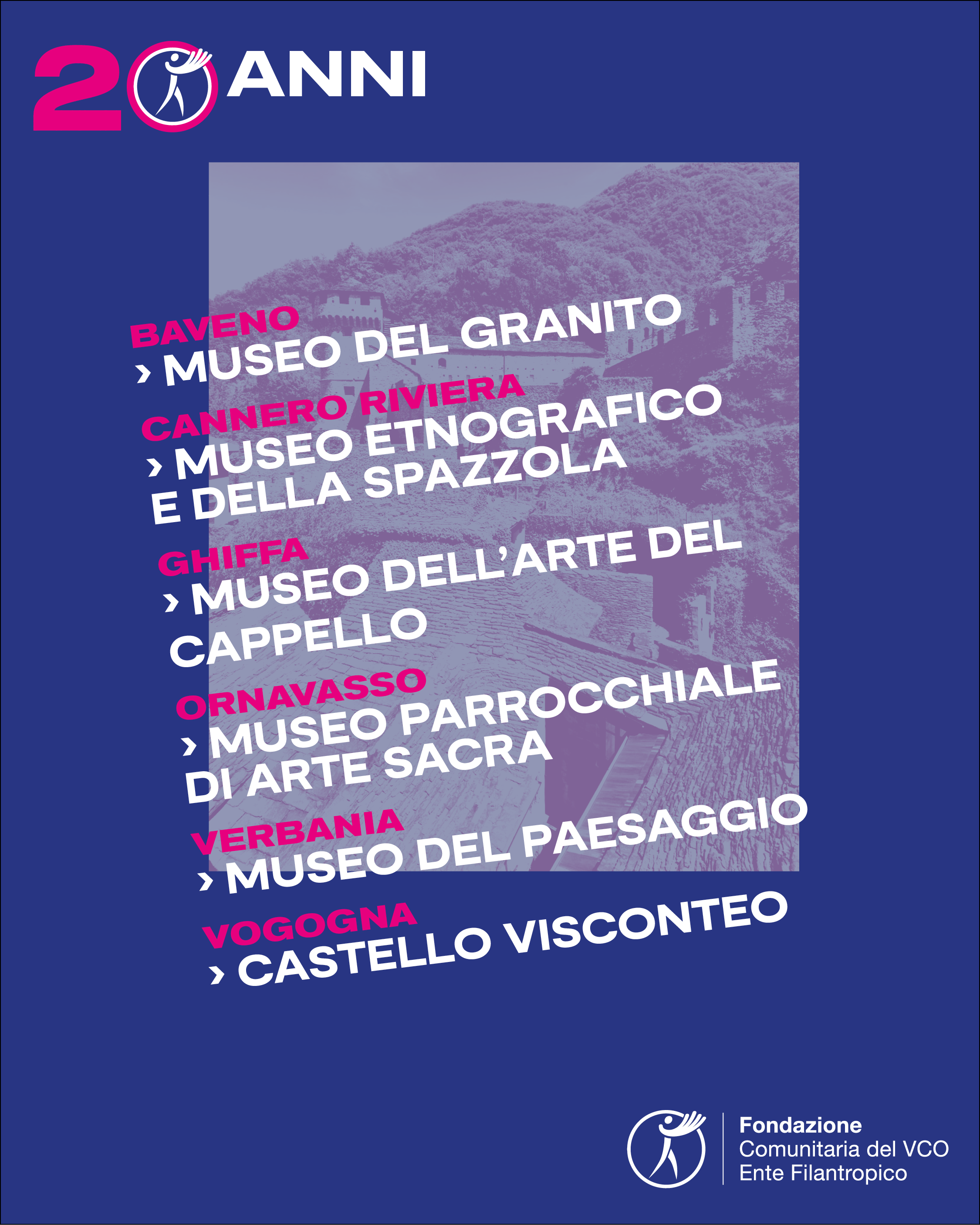 E' con grande piacere che alleghiamo la locandina di un evento diffuso organizzato da Fondazione Comunitaria del VCO, in occasione del raggiungimento del traguardo dei suoi primi vent’anni di attività.