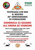 La Compagnia d'arceria 01VERB Arcieri del VCO e della Valgrande, da anni attiva sul territorio vogognese, invita amici e simpatizzanti a festeggiare insieme il 20° anniversario di fondazione. A Vignone si svolgeranno prove di tiro con l'arco aperte a tutti, un concerto dei Giovani Musicisti Ossolani e una cena in compagnia (in collaborazione con la Pro Loco di Vignone)