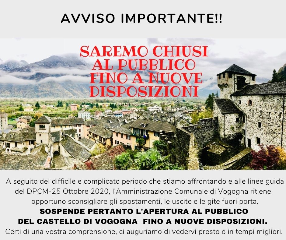‼️ AVVISO IMPORTANTE ‼️ CHIUSURA DEL CASTELLO DI VOGOGNA FINO A NUOVE DISPOSIZIONI