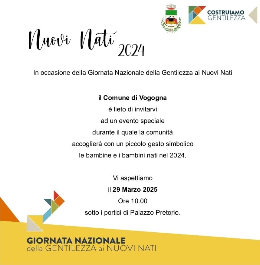 Quest'anno il nostro Comune ha deciso di aderire all'iniziativa "Giornata Nazionale della Gentilezza ai Nuovi Nati" dell'associazione "Costruiamo Gentilezza".