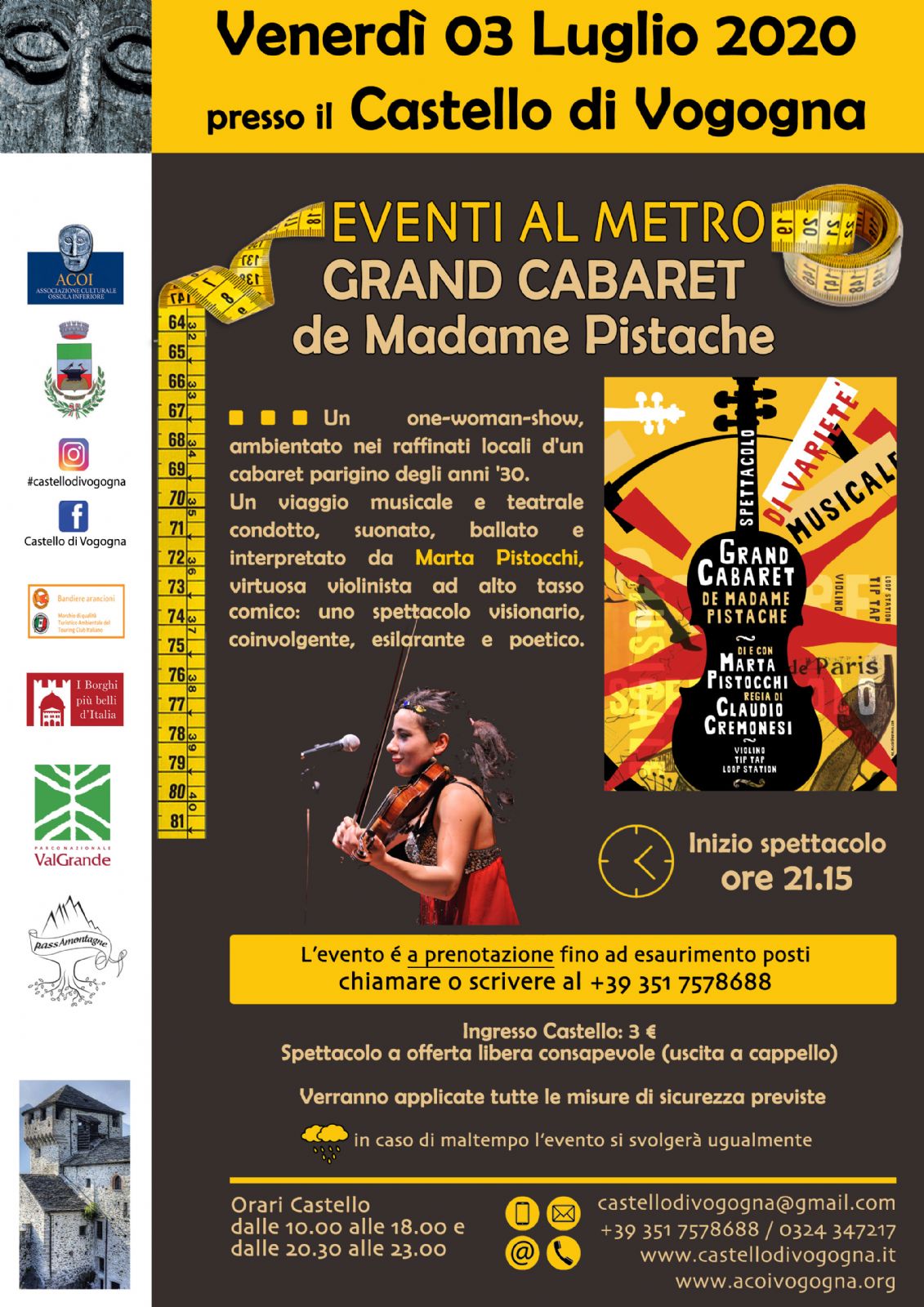 Eventi al metro è una rassegna culturale per i venerdì sera di apertura del Castello Visconteo di Vogogna (VB)