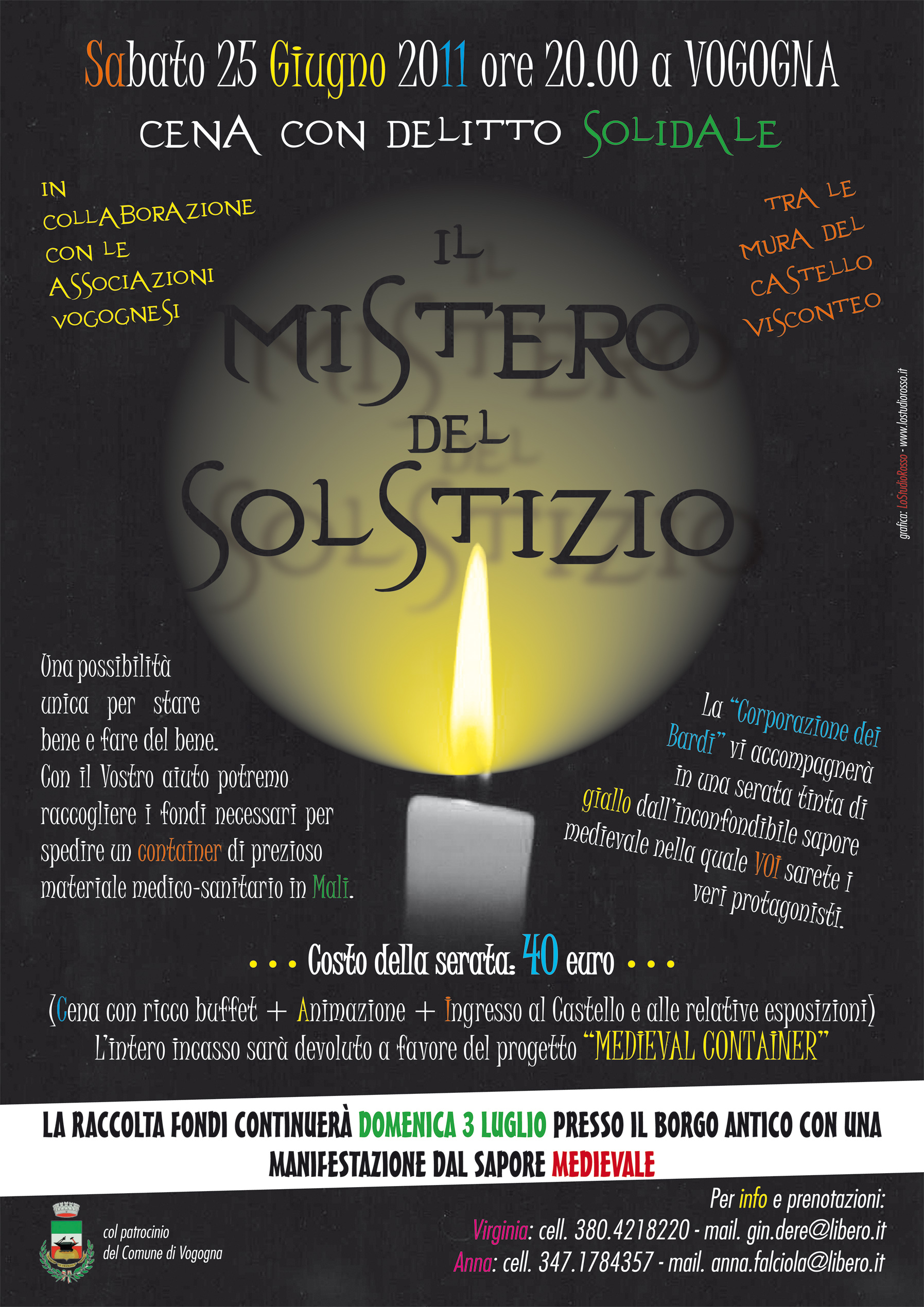 L’intero incasso sarà devoluto a favore del progetto MEDIEVAL CONTAINER, una raccolta fondi per la spedizione di un CONTAINER di materiale medico-sanitario in Mali.