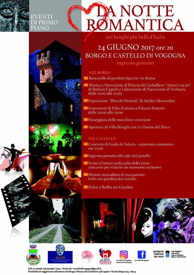 Il Castello visconteo ed il borgo di Vogogna, per l'occasione, si trasformeranno in un luogo dall'atmosfera romanticissima, e la serata sarà coronata da mercatini, mostre, musica, arte, sfilate e tanto altro…