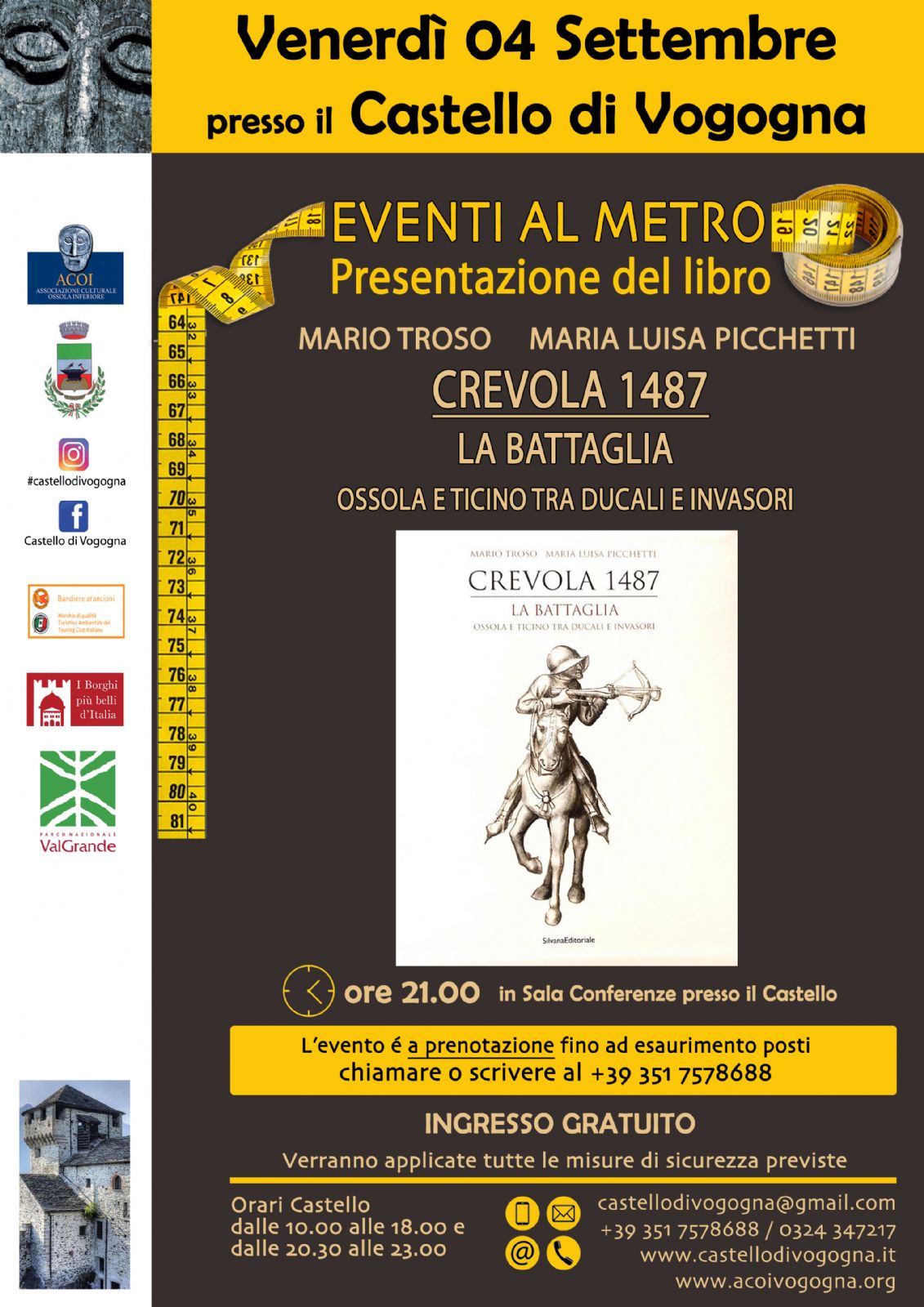 VENERDI' 04 SETTEMBRE ALLE ORE 21.00 Presso la Sala Conferenze del Castello di Vogogna
