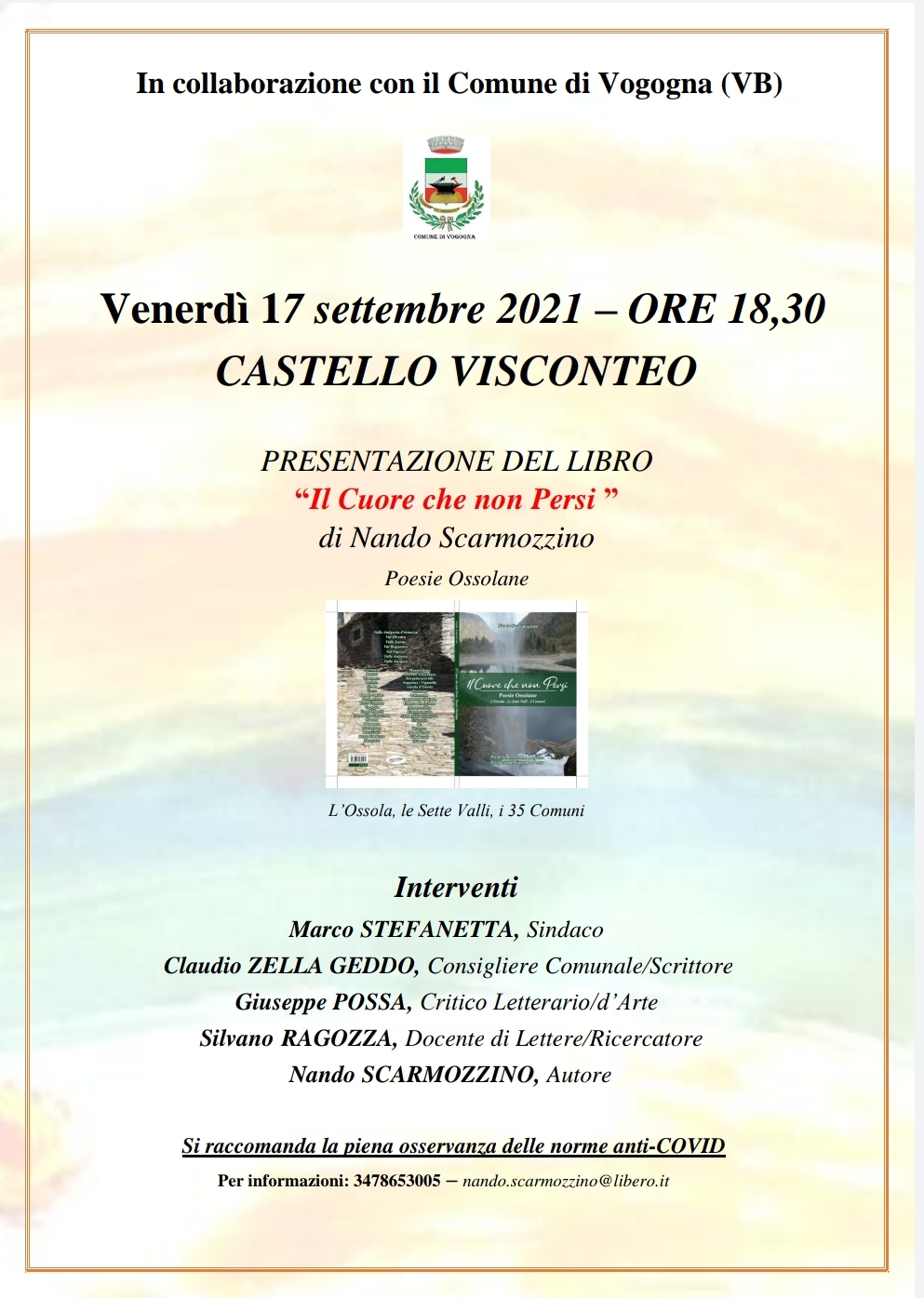 Venerdì 17 settembre alle ore 18.30 presso il Castello Visconteo si terrà la presentazione del libro "Il Cuore che non Persi" di Nando Scarmozzino.
