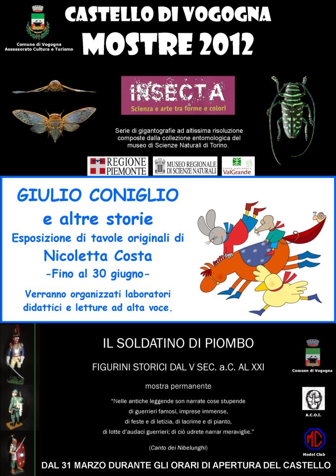 - GIULIO CONIGLIO E ALTRE STORIE: Esposizione di tavole originali di Nicoletta Costa . Fino al 30 Giugno. Verranno organizzati laboratori didattici e letture ad alta voce
