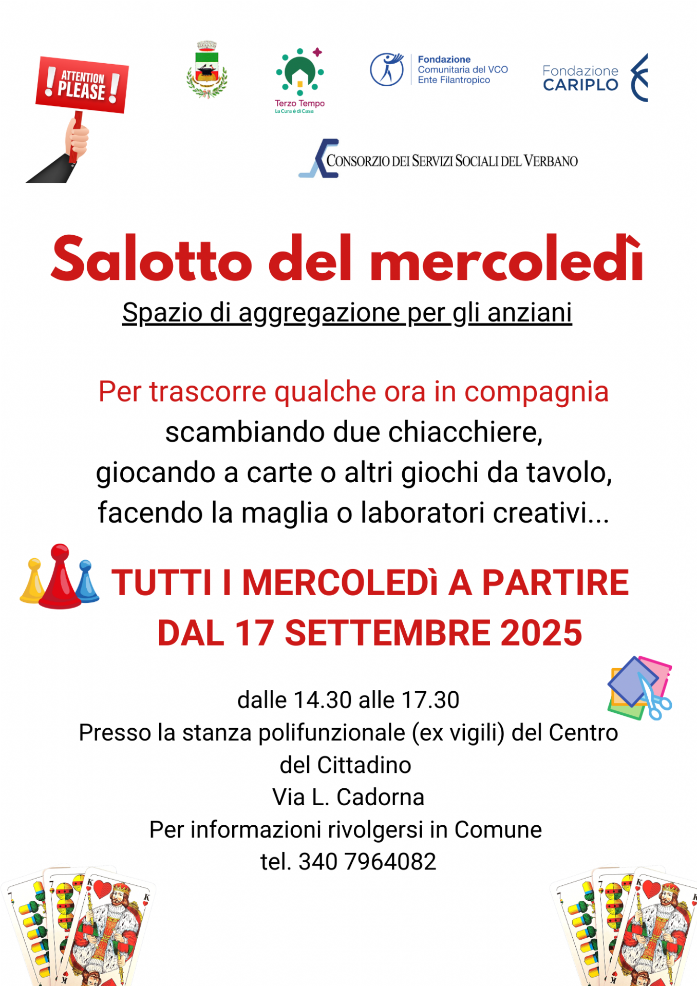 Per trascorrere qualche ora in compagnia scambiando due chiacchiere, giocando a carte o altri giochi da tavolo, facendo la maglia o laboratori creativi .....