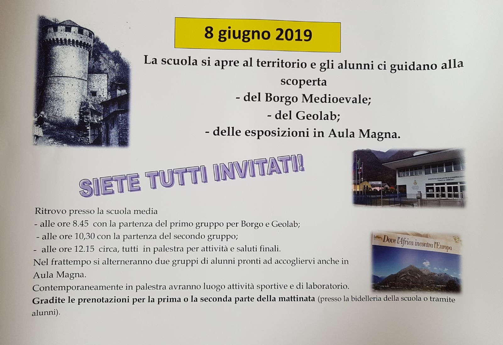 Alle ore 8.45 con la partenza del primo gruppo alla scoperta di Borgo e Geolab;