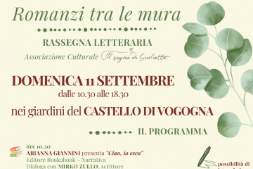 L'associazione culturale "Il sogno di Giulietta" ha il piacere di invitarvi alla rassegna letteraria "Romanzi tra le mura" in programma per domenica 11 settembre (a partire dalle ore 10.30) nei...
