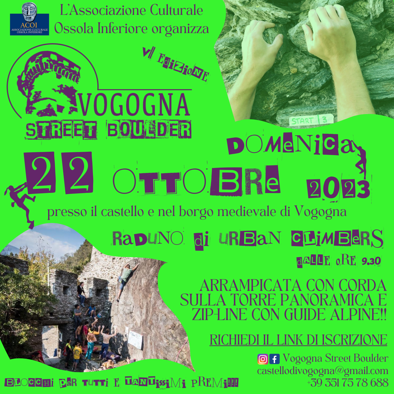 L'Associazione Culturale Ossola Inferiore vi invita a partecipare alla VII Edizione del Vogogna Street Boulder, evento sportivo, ludico e benefico in collaborazione con il Comune di Vogogna e Unione Sportiva Vogognese.