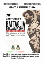 Verrà ricordato con una cerimonia il prossimo 6 settembre, presso il bivio della Masone a Vogogna, per iniziativa delle amministrazioni comunali di Vogogna e Piedimulera, il 70° anniversario della battaglia partigiana della Masone, l'evento bellico che fu con ogni probabilità decisivo per convincere tedeschi e fascisti ad abbandonare il 9 settembre 1944 la Val d'Ossola aprendo la strada ai "Quaranta giorni di libertà" e all'esaltante esperienza della Repubblica partigiana dell'Ossola.