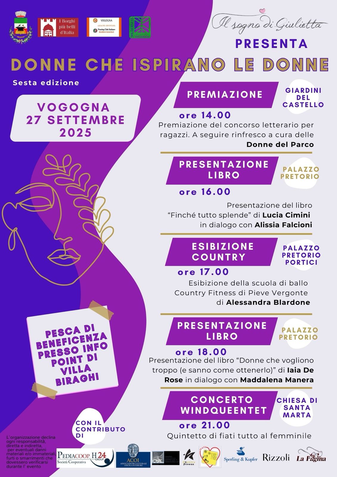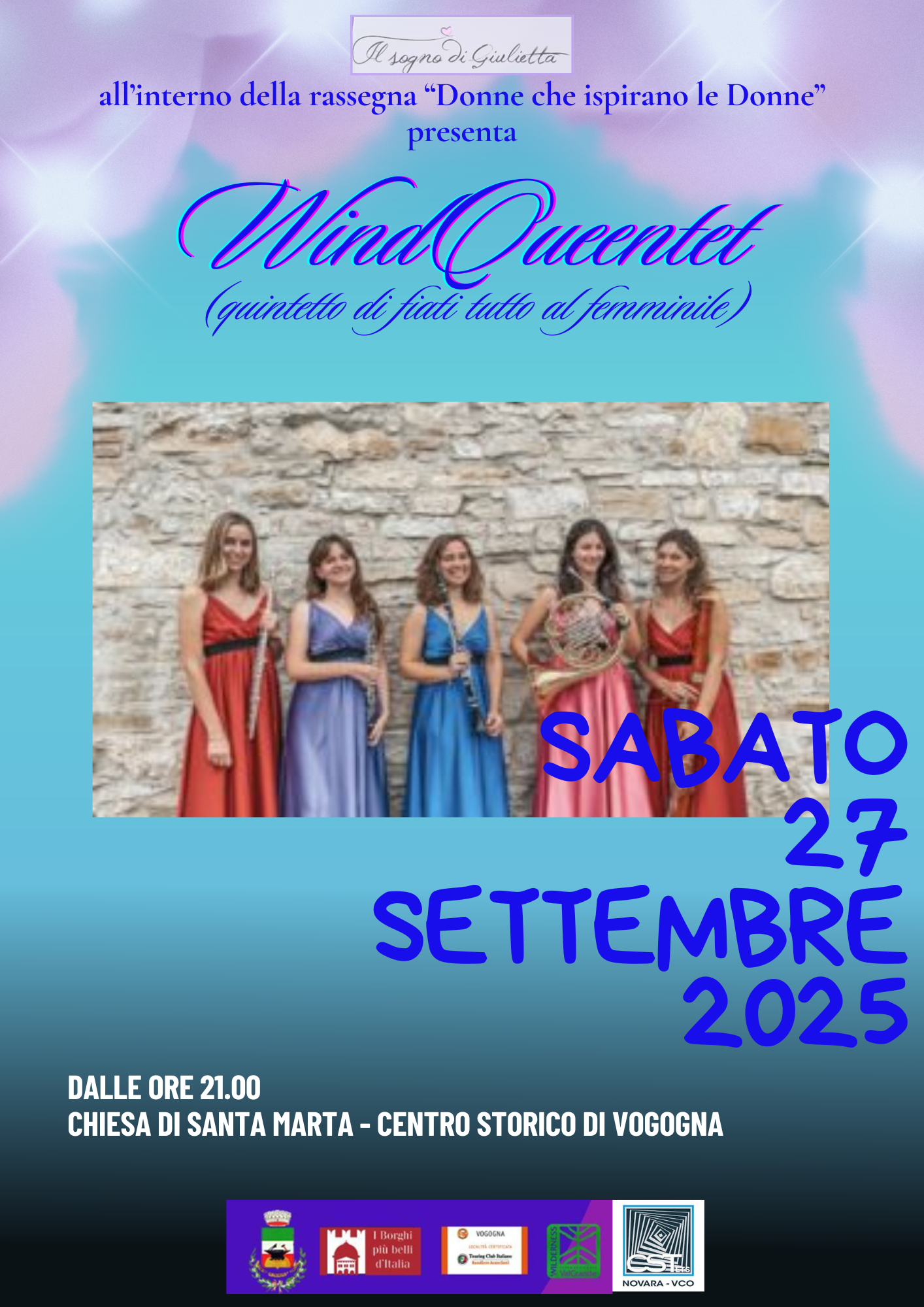 L'Associazione Culturale "Il sogno di Giulietta" - con il patrocinio del Comune di Vogogna - è lieta di annunciare la sesta edizione della rassegna "Donne che ispirano le Donne", che si terrà il 27 settembre 2025 a Vogogna, un evento pensato per celebrare il contributo delle donne alla cultura, alla solidarietà e alla società.