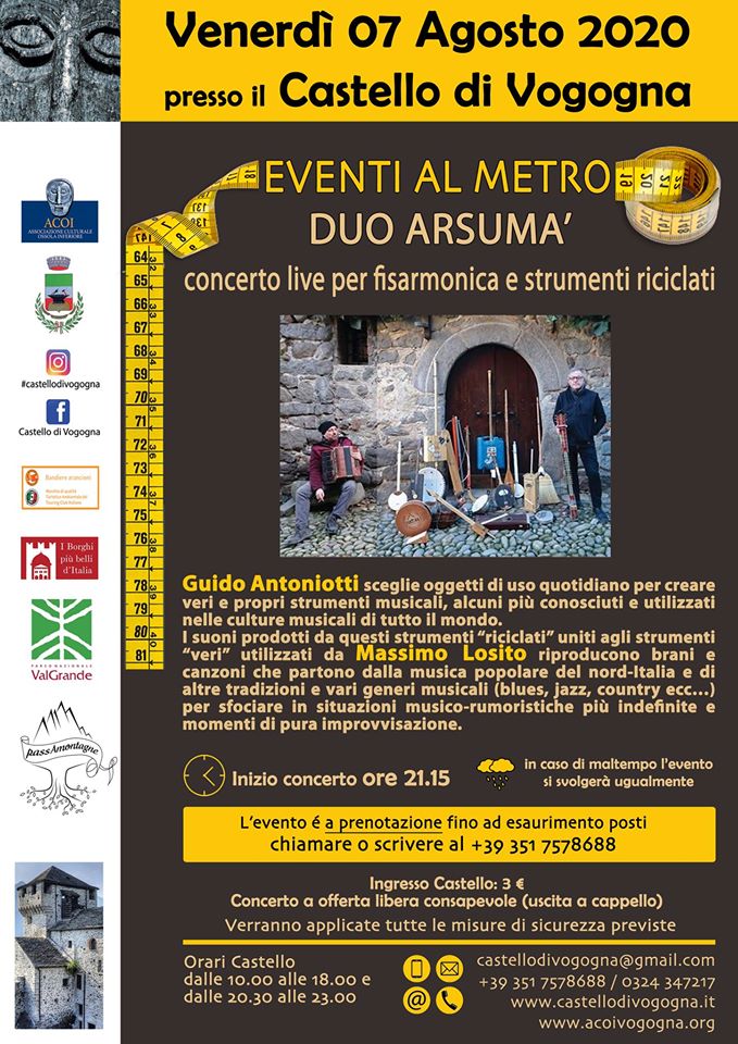 Eventi al metro è una rassegna culturale per i venerdì sera di apertura del Castello Visconteo di Vogogna (VB)