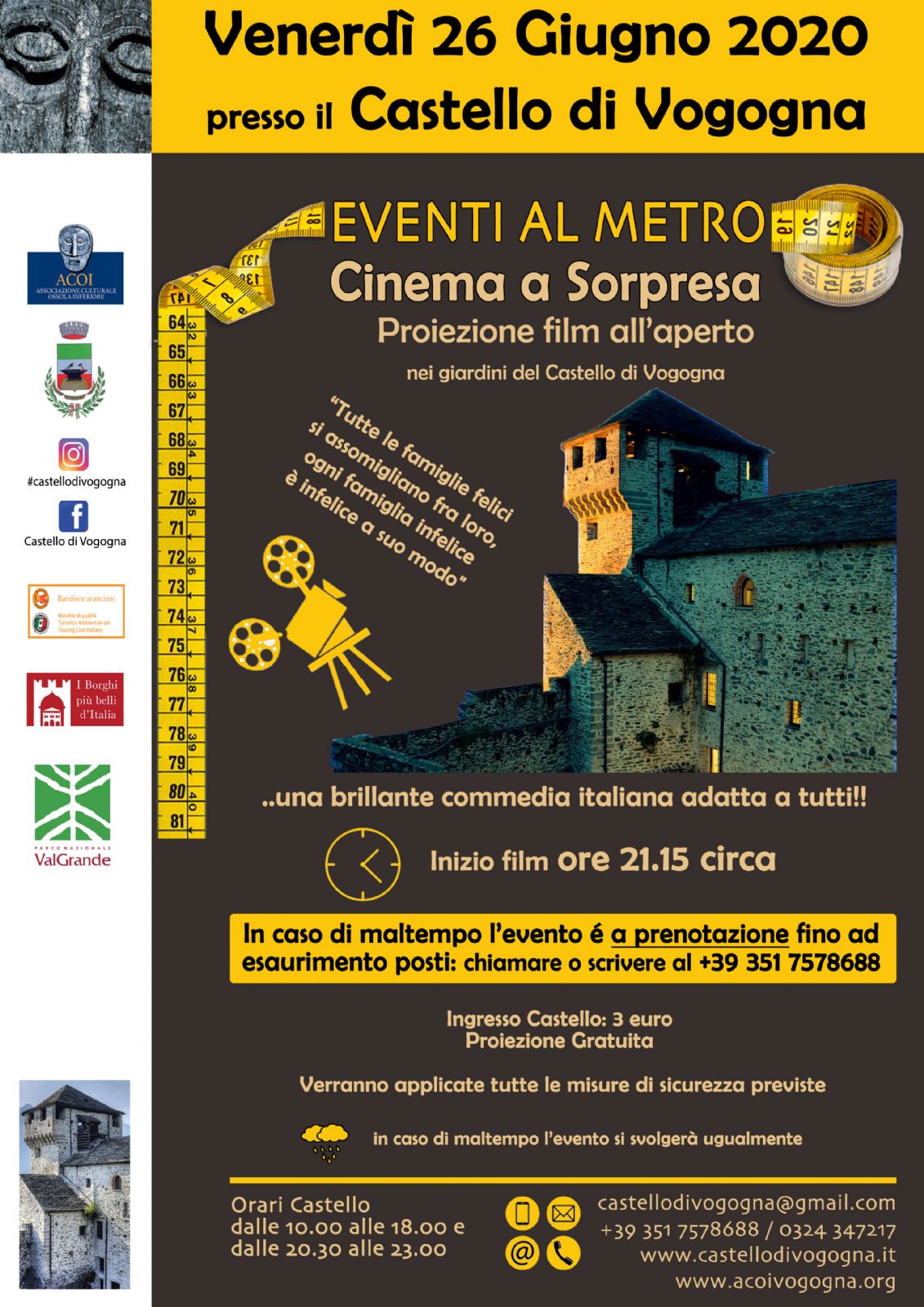 VENERDì 26 GIUGNO si terrà la proiezione di un film a sorpresa nei giardini del castello, all'aperto, non appena farà buio..