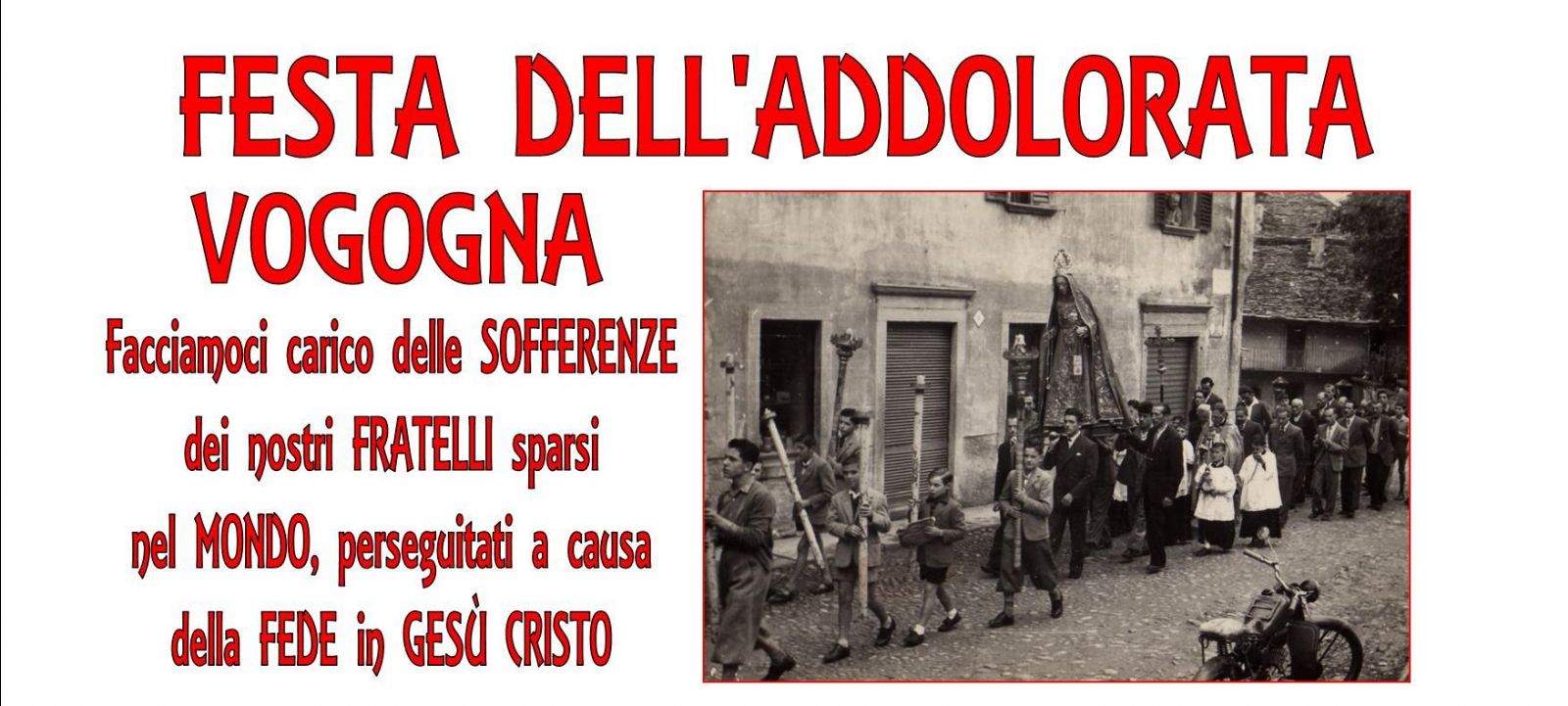 Dal 9 al 17 settembre, con l'aggiunta di due appuntamenti il 19 e il 23, si svolgerà a Vogogna la Festa patronale della Madonna Addolorata, tema di quest'anno: