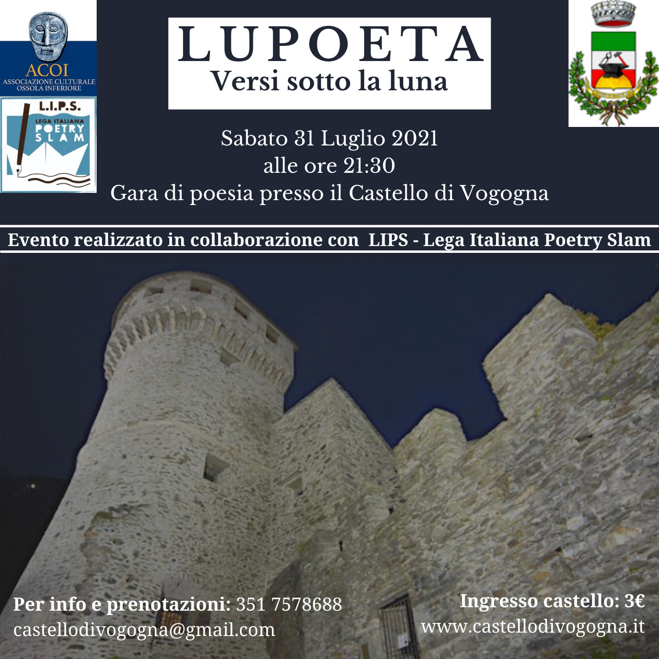 L’Associazione Culturale Ossola Inferiore organizza, all’interno della Rassegna Ri-Torno al Castello, la III Edizione di “LUPOETA”: gara di Poetry Slam.