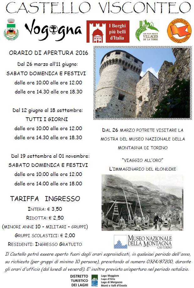 Il Castello di Vogogna sarà aperto nel periodo natalizio nelle seguenti giornate: