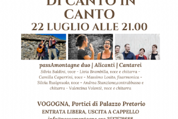 Di canto in canto - concerto sotto i portici di Palazzo Pretorio nel centro storico di Vogogna ore 21.00