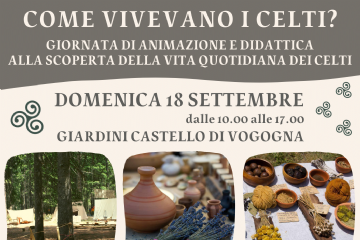 COME VIVEVANO I CELTI? GIORNATA DI ANIMAZIONE E DIDATTICA ALLA SCOPERTA DELLA VITA QUOTIDIANA DEI CELTI - Domenica 18 settembre dalle 10.00 alle 17.00 L'accampamento celtico:...