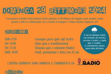DOMENICA 29 SETTEMBRE 2024 è in programma il Vogogna Street Boulder, evento sportivo e ludico tra le mura del centro storico medievale e del Castello di Vogogna con gli amici di ...