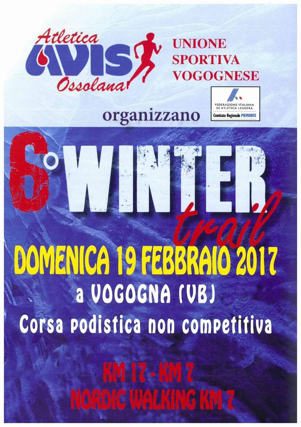 E' in programma a Vogogna il 19 febbraio, organizzato da Atletica AVIS Ossolana e dall'U S Vogognese, l'edizione 2017 del WinterTrail.